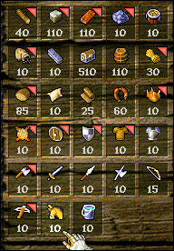 点开木头,石头,木板,铁,稻草,猪,布衣,铁盾,木盾,猪皮,面包,煤,斧头,弩。