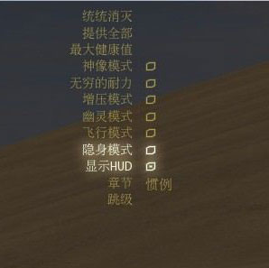 激活秘籍模式,然后输入以下秘籍可得到对应效果(区分大小写):