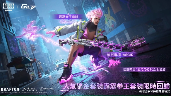 惊喜来袭!霹雳拳王现已增添专属站姿,只要成功收集并身着霹雳拳王套装服饰及配件,就能即刻触发。不仅如此,紫戮电极 - Kar98K、霹雳拳王背囊等诸多道具,正等待着你来兑换哦~