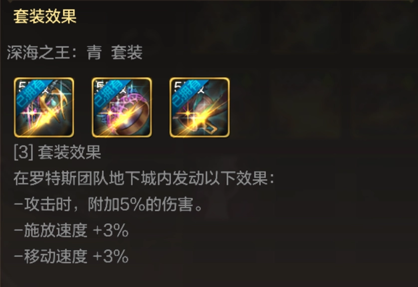 ◆当罗特斯宠物装备了宠物装备后,能获取额外的套装效果:全属性强化提升5点(全局有效),并且在攻击时附加5%的伤害(该效果仅在罗特斯团本内有效)。
