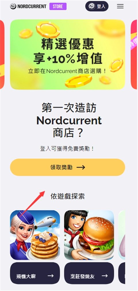 3、访问网址(https://store.nordcurrent.com/zh-hant/home),使用刚刚的邮箱号登录。(注意:若未在游戏中登录过NORD....这个ID,需先在游戏内登录,之后方可在此处登录,否则无法进入;已登录过该ID账号的,可直接跳过第一步,在此领取300燃油。)