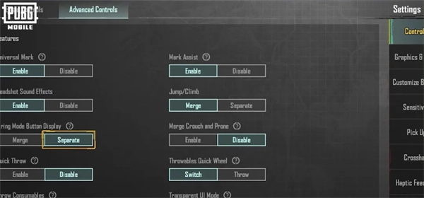 此外,自定义按键位置有所更新,还新增了自定义开火模式! 大家只需在【操作】设置里的【进阶操作】页面,将【开火模式按钮显示模式】设置为【独立】,就能在自定义按键位置中对【开火模式按钮】的位置进行调整啦~