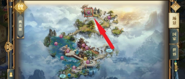 2、点开地图,回到咱们刚进入游戏时所在的“桃花源”,找到师傅,通过自动寻路前往。