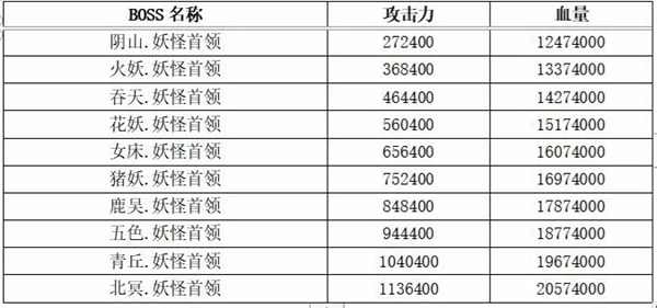 各大妖国的最强boss属性如下: