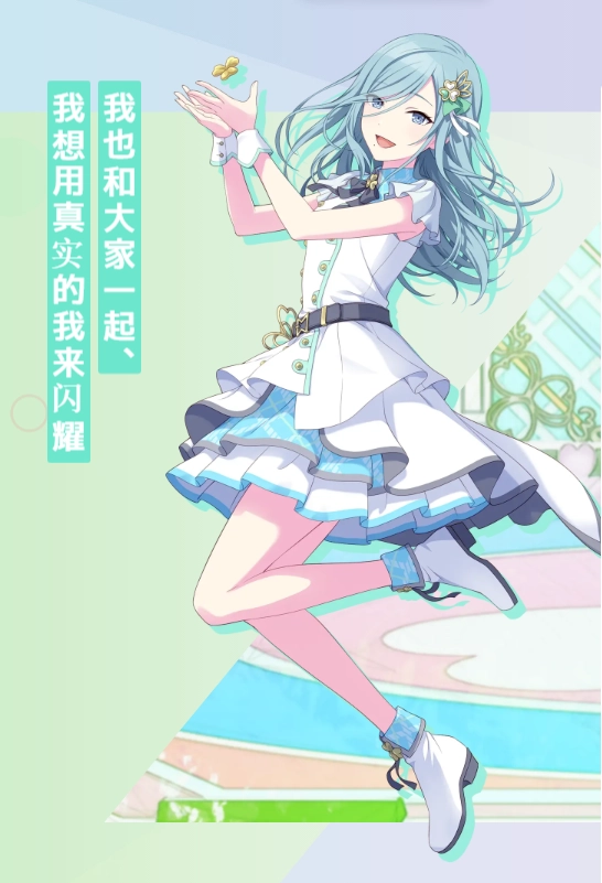 4、青柳冬弥,出身古典名家的高材生。他将超越传说级活动《RAD WEEKEND》作为目标,同时也在尝试作曲。尽管深知传说所达的真正高度并为之叹服,但凭借过往积累的经验,他期望能与伙伴们携手跨越障碍,领略那之后的风景。
