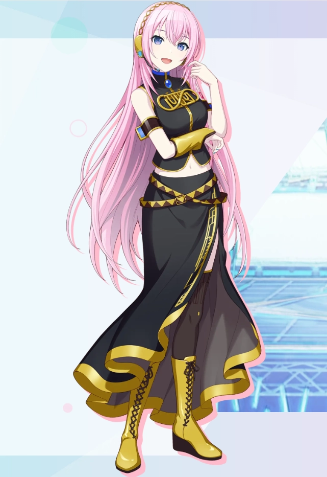 4、巡音流歌(巡音ルカ):有着桃红色长发的女性歌手。虽然她的声音柔和舒适,但有时仍会发出热情的歌声,并会说双语:日语和英语。