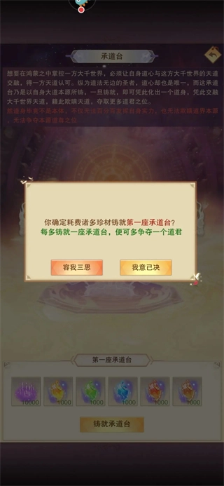 4.升级鸿蒙道场:将普通道场升级为准圣道场。可以增加道田10%的材料产出。