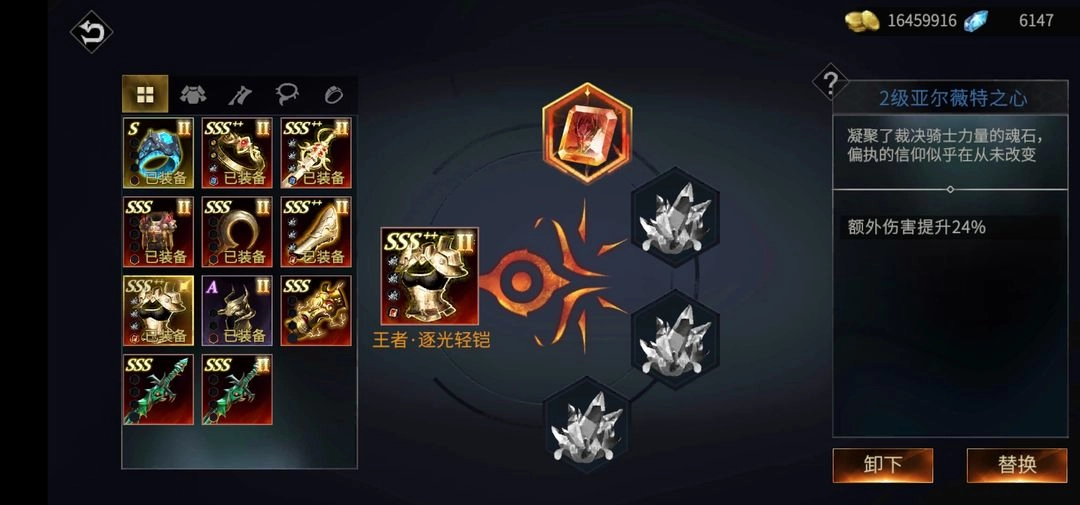 3、还记得“勇者试炼”这个第三个玩法吗?在二周目通关时,获得的是二周目的装备,每件装备都能镶嵌一个boss精魄。每天都能打出sss++的武器和戒指,查看附加属性时,只关注暴击伤害,这可是二周目前期输出高低的关键所在。另外两件装备,上衣和护手,就看副本掉落哪个就穿哪个,毕竟前期装备的附加属性普遍不高。