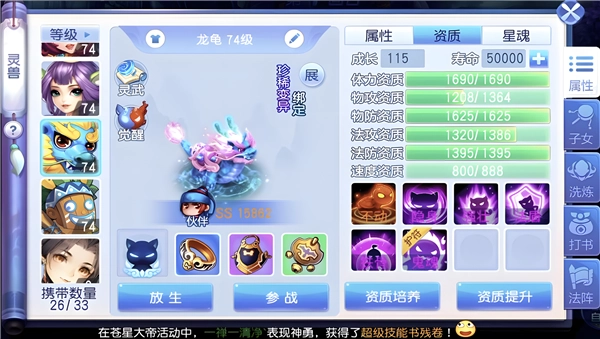 竞技上场的概率就比较低了,秒四分灵太过于严重,不过稳定的挂机日常还是不错的选择,我们完全可以当做日常宠物来携带!