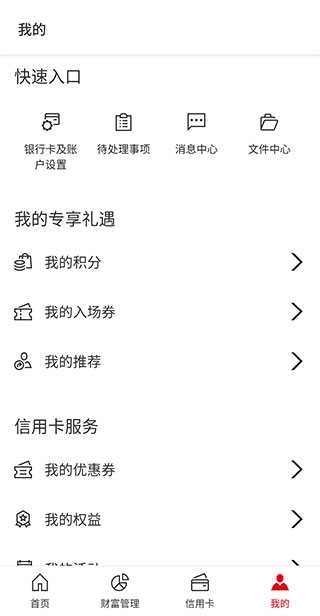 2、然后在我的页面中点击快速入口下方的银行卡及账户设置入口,即可查看卡号了。