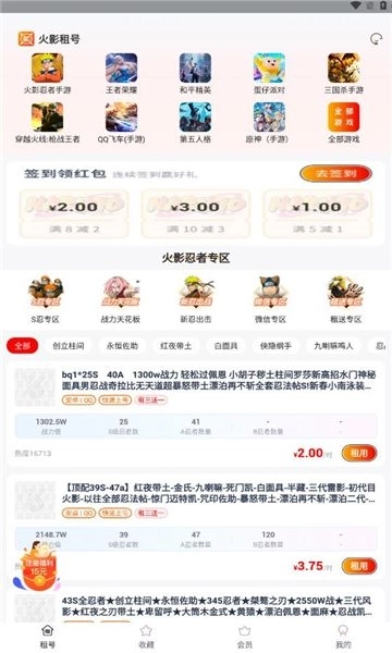 火影租号app,堪称极为专业的线上游戏租号平台。平台内账号选择琳琅满目,无论你怀揣何种游戏需求,它都能一一满足。只需随时掏出手机,就能在线轻松筛选。而且线上租号价格十分实惠,还有诸多新人福利可直接领取。快来瞧瞧吧!