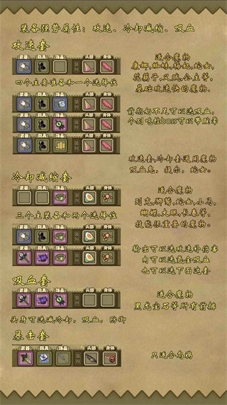 比较优秀的套装搭配,比如暴击冷却等等,用的少就没写上去。