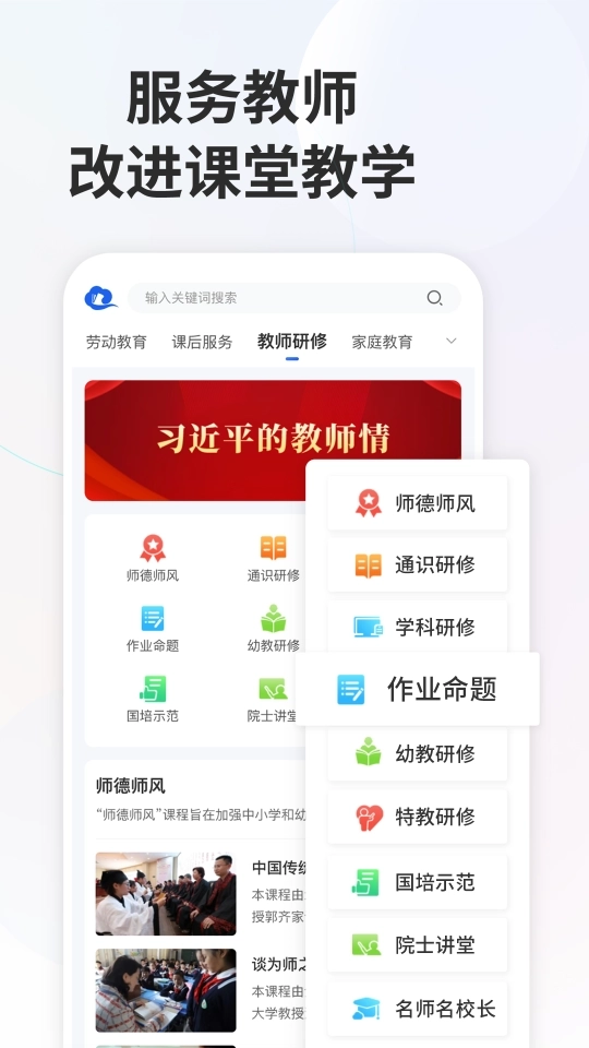 教师可浏览“专题教育、课程教学、课后服务、教师研修、家庭教育、教改实践经验”所有6个栏目资源。