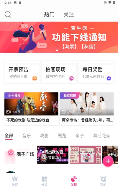 票牛app为用户打造一个全面的票务服务平台,这里有非常多的优惠门票,演唱会门票、电影票、各种展览会门票、旅游景点门票等应有尽有,还有众多的优惠大礼包等你来领,真正的做到先看后付。