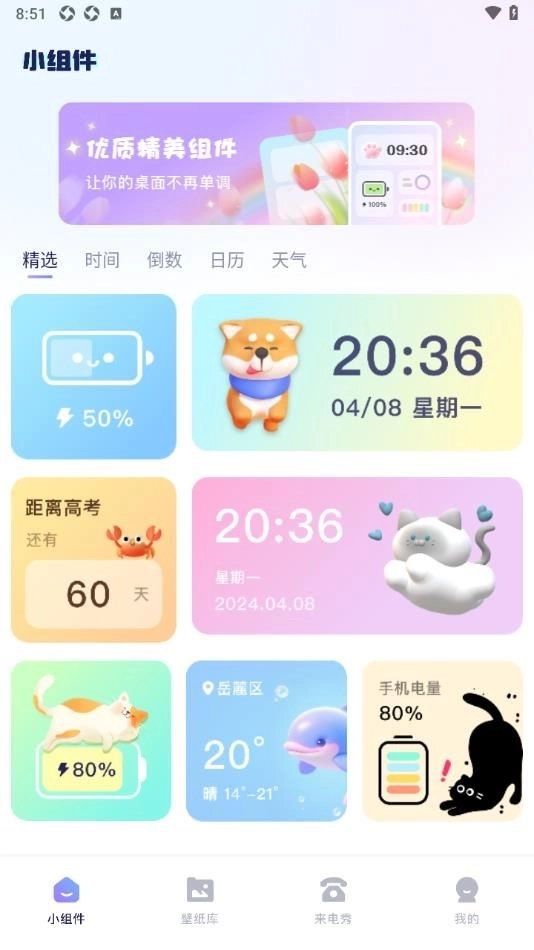 2、时间、倒数、日历、天气这些组件,都能自由选择,并进行优化设置。