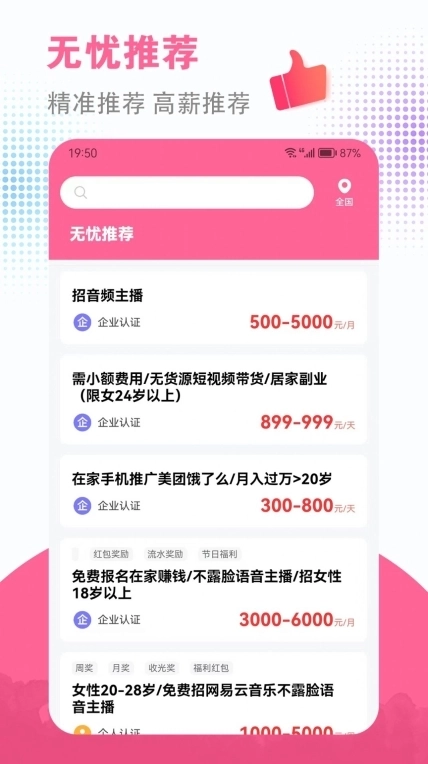 3、都是经过严格审核的岗位,确保你看到的信息是可靠的。