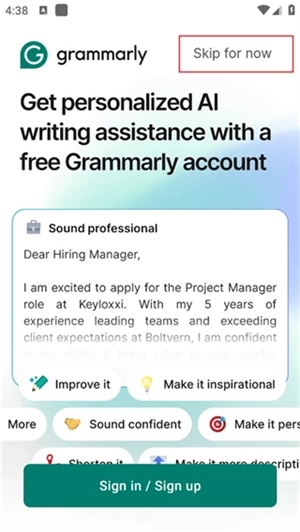 Grammarly是一款领先的智能 AI 英文写作语法检查工具软件,能够实时检测文本中的语法错误和拼写错误,并提供修改建议。有需要的用户们赶紧下载体验吧。