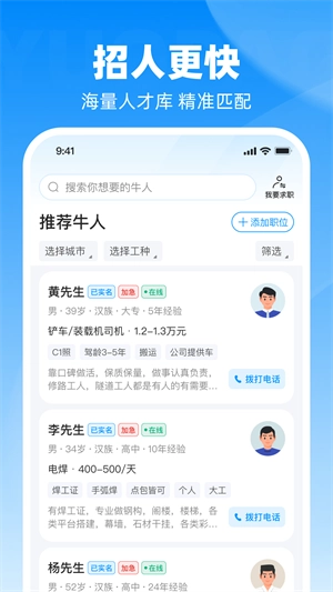 【服务人群,覆盖建筑招工行业全方位找工作需求】