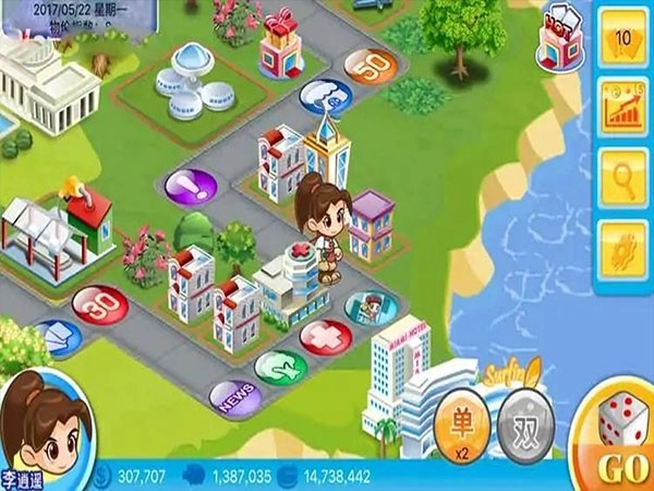 自由掷骰子来决定行进的步数,可藉由买土地、盖房子及收取租金,来广展自己的势力!