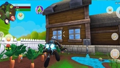 这是一款模拟昆虫在后院生活场景的模拟器,场景中包含鲜花、微型交通工具以及房屋。