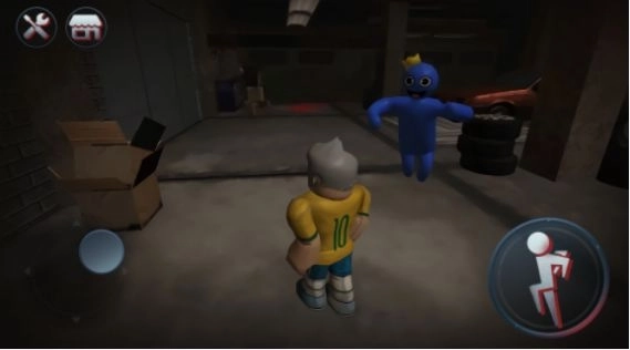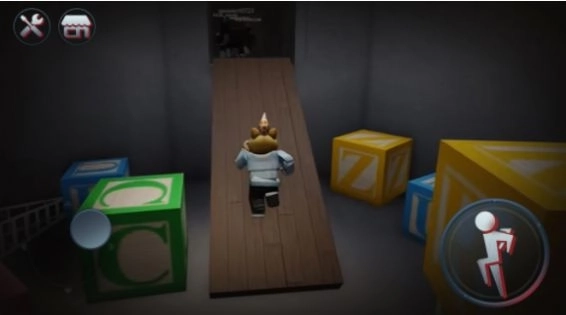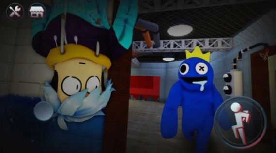 2、在彩虹朋友的追逐下躲避,持续奔跑,寻觅各类解密元素,最终打开门成功逃脱。