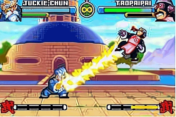 另外告诉你,孙悟空一开始无法高跳,通关后再额外模式中的悟空的家找道具“如意棒”,便可使用“上+A”高跳,枯林可用“上+A”和连跳两下,天津饭、饺子、比克、龙、恶魔蝙蝠等按“A连打”配合方向键可在空中飞,乌龙、丹柏林等不用按键就可在天空中漂浮,其他人物皆类似枯林。