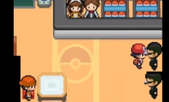 2、进入宝可梦中心后,直接上二楼,与最里面的黑色西服npc对话,