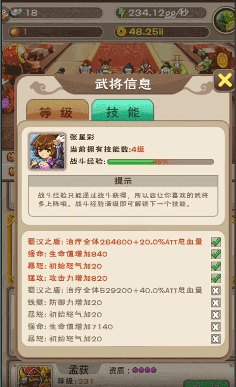 在《刘备磕头2》的后期,武将的选择对玩家而言至关重要。后期英雄的资质提升极为关键,提升一次资质,英雄实力就上一个档次。三星及以下的英雄暂且不提,就像后期的祝融和孟获,刚推出并购买时,在不少关卡中,放一个大招就能轻松通过一关。
