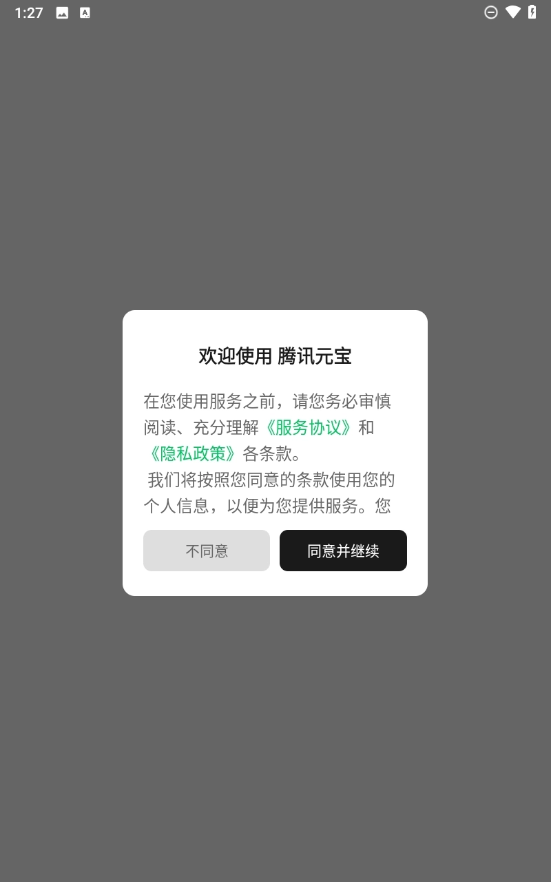 2、输入手机号以及验证码注册腾讯元宝账户。