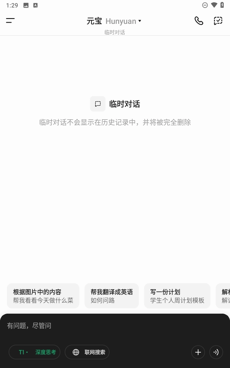 开启临时对话模式,对话内容不保存,历史记录不留痕迹,保护隐私更安心。