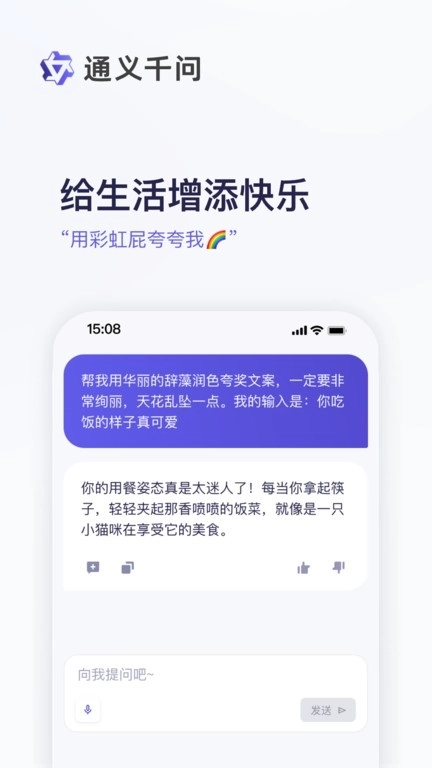 陪伴您度过愉快的生活,如高情商回复、吹彩虹屁、健身计划,为您提供有趣的问答服务。