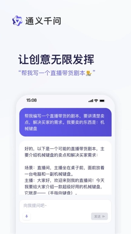 通义千问一款大语言模型,用户可以直接通过语音向AI进行提问,AI也会使用语音进行回答,支持文本回答、图片理解、文档解析三种模式,除文字交流外,用户还可在网页端上传图片和文档并询问相关问题。感兴趣的赶紧下载体验吧。