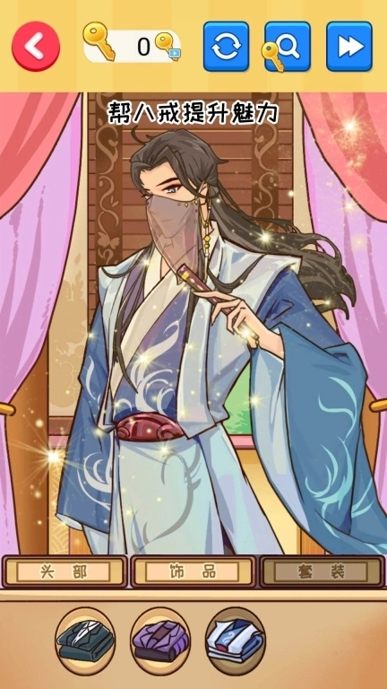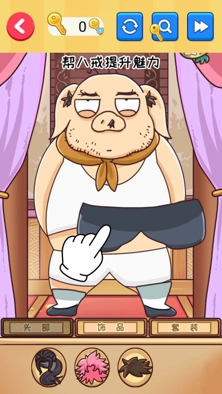 1、在每个关卡中,玩家可以通过点击不同的选项来为角色更换服装、发型和配饰。