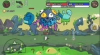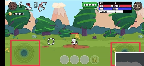 4、于游戏里,左下角的轮盘负责操控角色移动,右侧轮盘以旋转方式瞄准敌人,且会自动发射炸药。