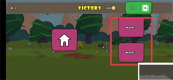 6、取得胜利后,你能够点击WAVE+1 以及WAVE+5,以此增加游戏里的敌人波数。