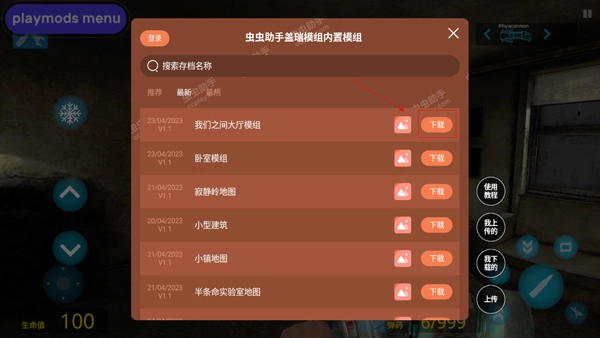 1、在本站下载garrysmod手机版,然后打开游戏,点击右下角虫虫助手;