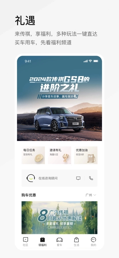 广汽传祺APP是为用户精心打造的:资讯、社交、购车、养车用车等一站式服务平台