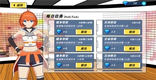 1. 萌趣的二次元3D画风,营造出唯美画面,别具一格的场地里,还有美少女相伴,陪你一同锻炼。