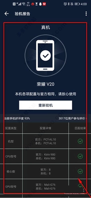 3、稍等片刻,手机便会出现具体的验机报告。