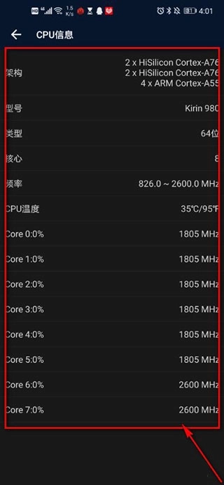 3、界面跳转,即可查看CPU信息。