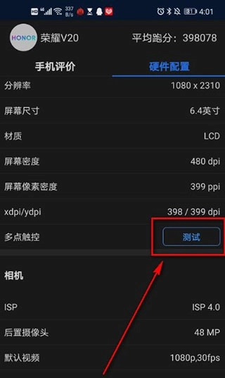 4、返回上一步界面,点击多点触控测试。