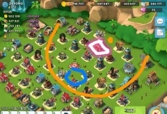 方法4:贴墙走位。多数玩家偷本之所以未能成功,原因在于没选对路线。当对方防御布置得既密集又不规则时,若从正面或左右方向进攻,野人会立刻分散,烟幕无法覆盖,致使部分兵力遭受攻击而损失,进而没有足够力量去攻打大本。此时,我们可以贴着墙行进,让野人保持一致路线,从最左边或最右边抵达右边或后方,然后再实施偷本,以此提高偷本的成功率。