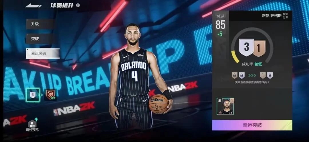 ②幸运突破(突破材料不足,又想提前突破可以尝试,当然还是会有失败的可能,失败不会返还材料,欧皇多多使用,祝大家多多5+1突破成功)