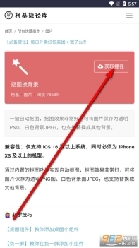 4、之后就能够得到柯基捷径库抠图换背景的快捷指令。