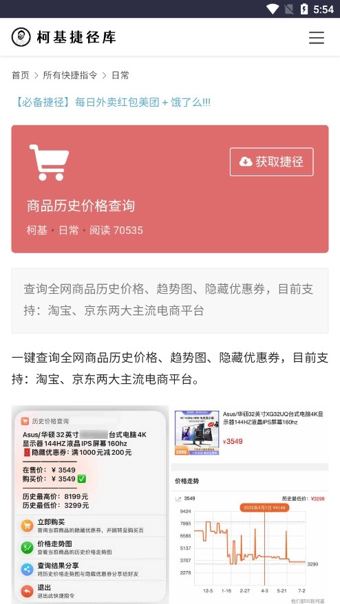 3、 点击 “获取捷径”。