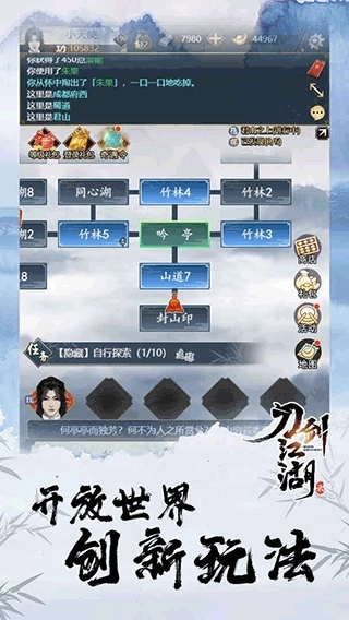 《刀剑江湖录》,一款开放自由的武侠ARPG手游,带你踏入玄幻的武侠天地。在这独特世界里,每位玩家都将邂逅与众不同的江湖,每个角色皆能书写属于自己的辉煌。它还是剑墨江湖的另一扇大门,绝非简单粗暴的换皮之作。此次版本不仅增添了文字本地图效果,还打造了全新UI。更将传统mud融入图形化设计,极大提升内容表现力。游戏美工实力出众,清新画风洋溢着浓郁的国风武侠韵味。 而且,《刀剑江湖录》不会强迫玩家氪金,只要你有坚持游玩的决心,轻松就能成为游戏中的大神。游戏玩法丰富多样,小动态、门派、战力、装备、社交等一应俱全,自由度颇高,挂机也能获取收益。在这里,你能领略极致线条带来的愉悦,水墨画风搭配精悍文案,体验堪称完美。快来一同畅游武侠世界,盖世神功正待各位大佬前去领悟!