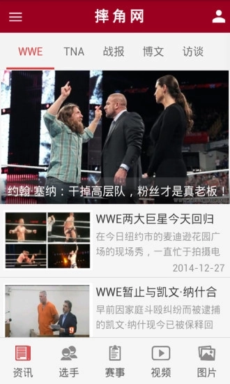摔角网是聚掌网络科技有限公司专门为智能手机用户打造的一款应用软件,它集资讯、视频、音乐、图片功能于一身,能及时为用户提供各类摔角信息。其内容涵盖了WWE、TNA、ROH、UFC等。