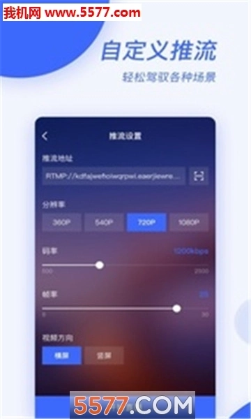 支持对分辨率、码率、横竖屏方向等参数进行自定义设置。