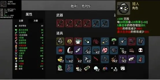 每持有一件武器,就会减5%的伤害,初始加20%伤害