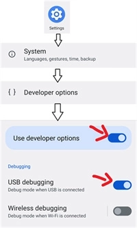 1、首先开启【开发者权限】并启用【开发者选项】以及【USB调试】。